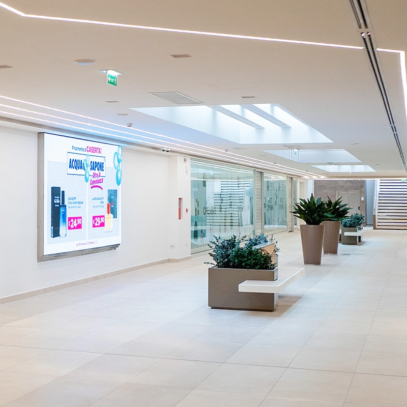 Gli schermi presenti nella galleria di Al Parco ti permettono di comunicare in modo immediato, dinamico e ad alto impatto visivo. Una soluzione ideale per aziende, professionisti e attività locali che vogliono aumentare la propria visibilità in una posizione strategica nel centro di Caserta.